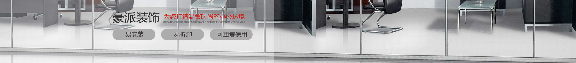 公司主營的辦公隔斷不僅布局、色彩和表面紋理等方面始終保持非常時尚的室內風格。而且容易安裝,又容易拆卸,并可重復使用,以滿足現代化辦公環境的需求。